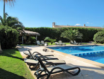 Son Sant Marti 3 km from Can Picafort: Large, child friendly country house "Finca Can Corritx", 2 storeys, surrounded by trees and fields. Property composed of main house and outbuilding 7 km from the centre of Muro, 3 km from the centre of Ca'n Picafort, 12 km from the centre of Alcudia, in a quiet, sunny position, 3 km from the sea, 3 km from the beach, in the countryside, south facing position. For shared use: property 10 ha with lawn and trees, orchard, swimming pool (20 x 12 m, seasonal availability: 01.Mar. - 31.Dec.). WC in the pool area, children's pool, outdoor shower, tennis, patio, terrace, garden furniture, pool maintenance by the owner/gardener. In the house: storage room for bicycles. Roofed, parking on the premises. Shop 3 km, grocery 2 km, supermarket 2 km, restaurant 3 km, bar 1 km, bakery 3 km, café 2 km, bus stop "Camping Can Picafort" 2 km, railway station "Sa Pobla" 10 km, ferry "Puerto de Alcudia" 16 km, sandy beach "Ca'n Picafort" 3 km. Sports harbour 5 km, marina 16 km, golf course (18 hole) 18 km, surf school 6 km, sailing school 6 km, tennis 4 km, riding stable 5 km, sports centre 4 km, walking paths from the house 8 km, cycle lane 6 km. Nearby attractions: Formentor 20 km, Albufera de Alcudia 10 km, Cuevas de Campanet 18 km. Hiking paths: Albufera de Alcudia 10 km. Please note: car recommended. On the estate animal husbandry. The owner lives in the same residence.